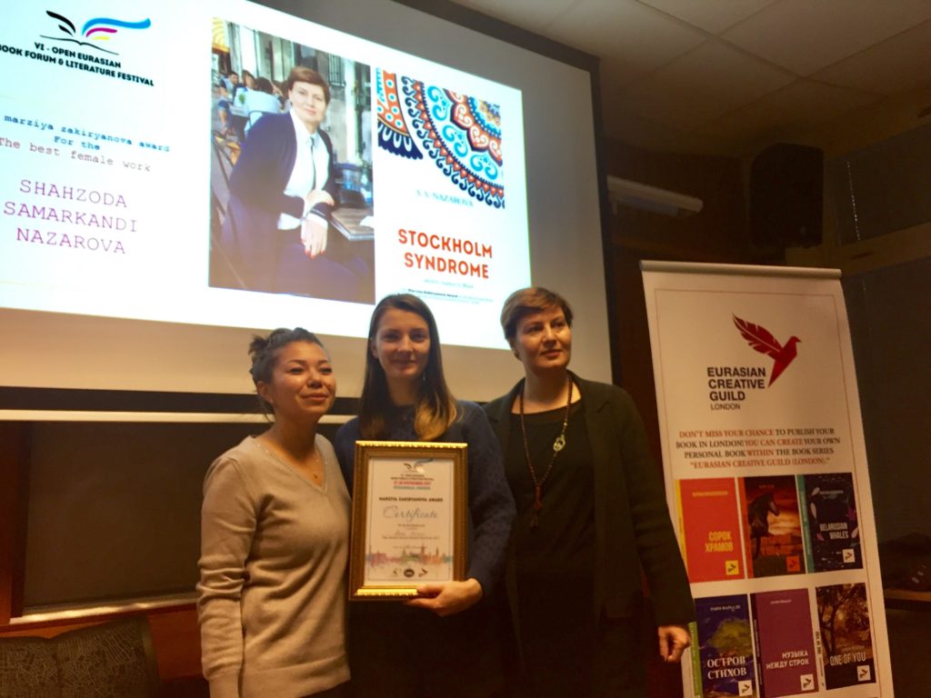 20 ноября 2017 года в Стокгольме (Швеция) были объявлены обладатели премий престижного международного литературного конкурса Open Eurasia. Итоги конкурса были подведены на VI фестивале Open Eurasian Literature Festival & Book Forum-2017, который проходил в Стокгольме в период с 17 по 20 ноября. Само вручение прошло в культурном центре ABF в зале им. Шведской писательницы Эльзы Бесков.