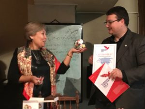Вице-председатель Евразийской творческой гильдии Марат Ахмеджанов в торжественной обстановке вручил сертификаты новым членам Гильдии, а также поблагодарил членов Консультативного Совета за их работу и вручил Почетные грамоты Елене Безруковой и Светлане Юдиной.